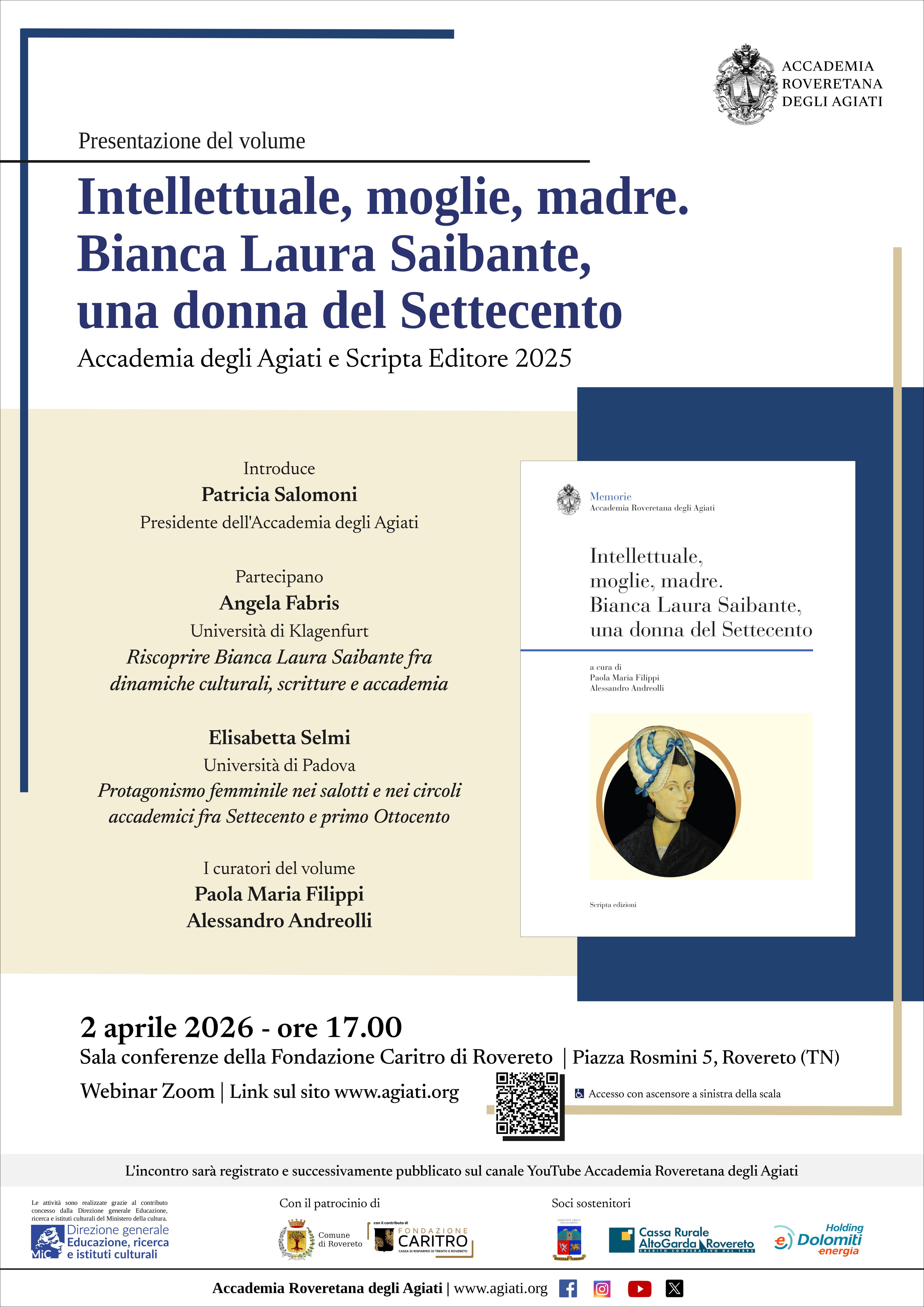 L'evento sarà registrato e successivamente pubblicato sul canale YouTube Accademia Roveretana degli Agiati.
