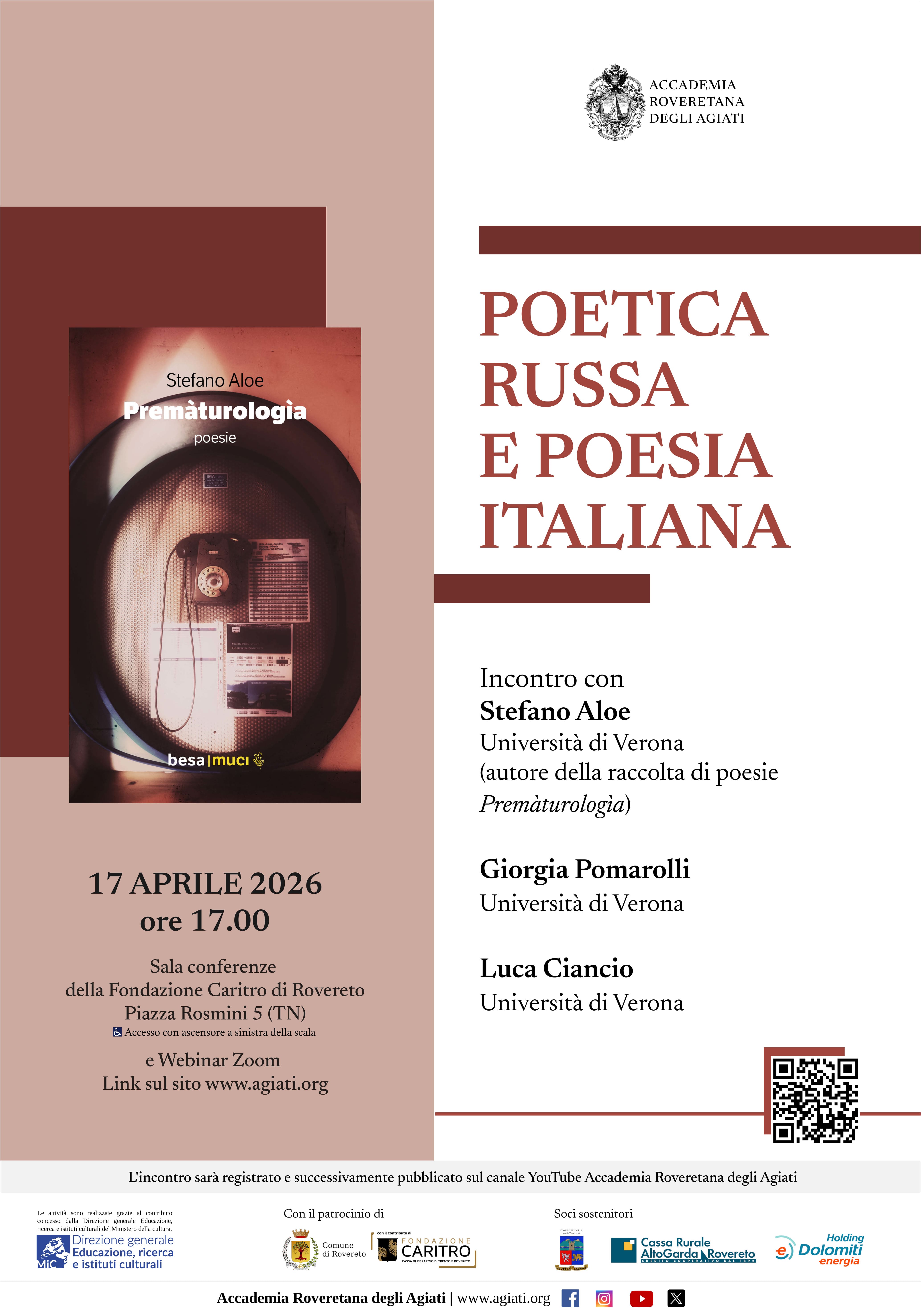 L'evento sarà registrato e successivamente pubblicato sul canale YouTube Accademia Roveretana degli Agiati.